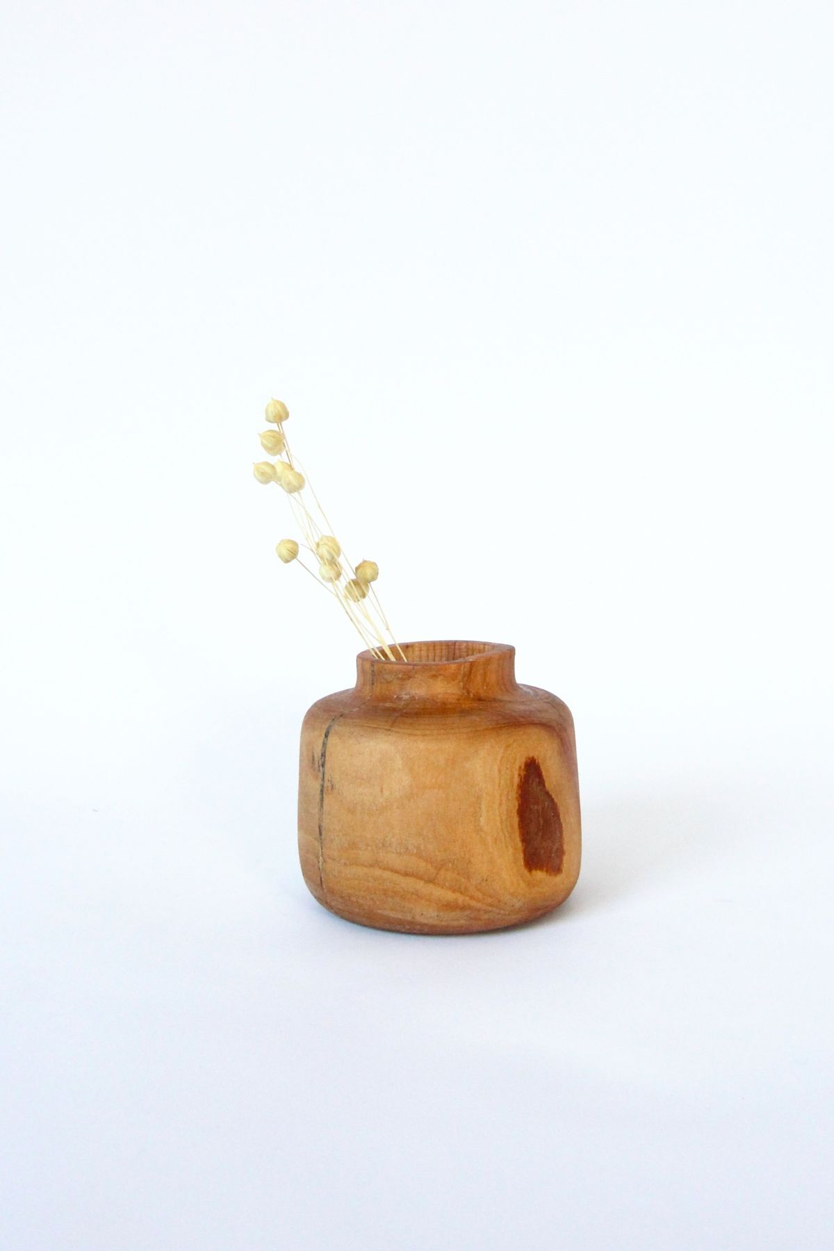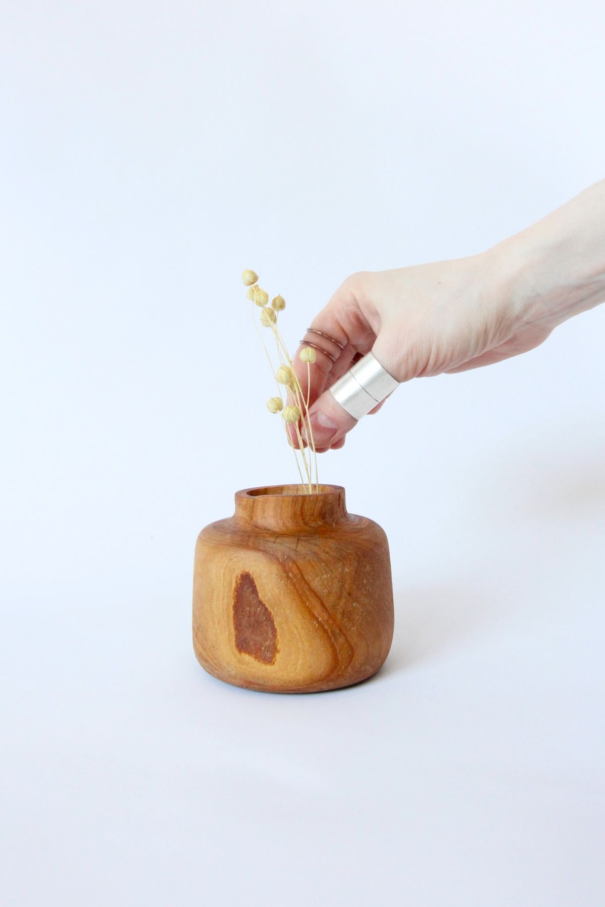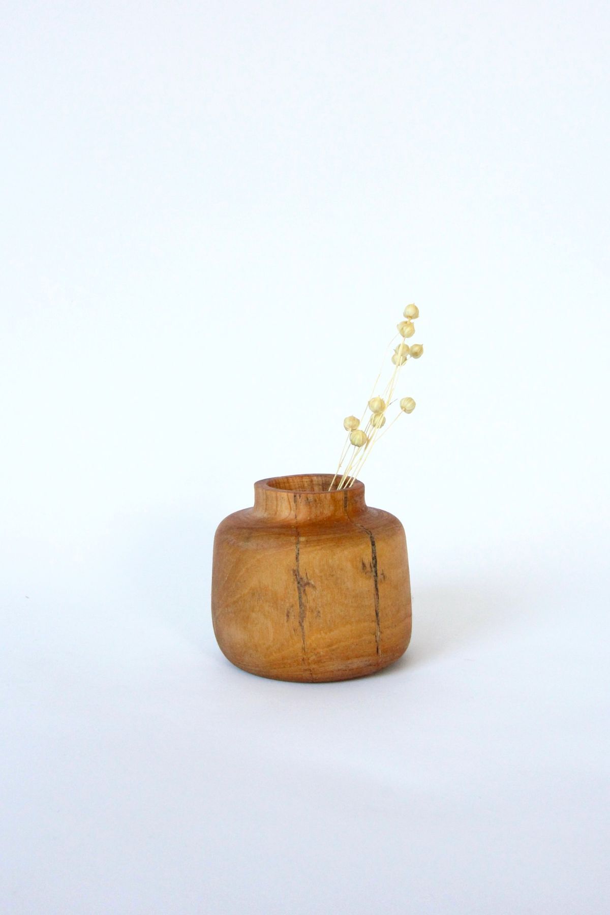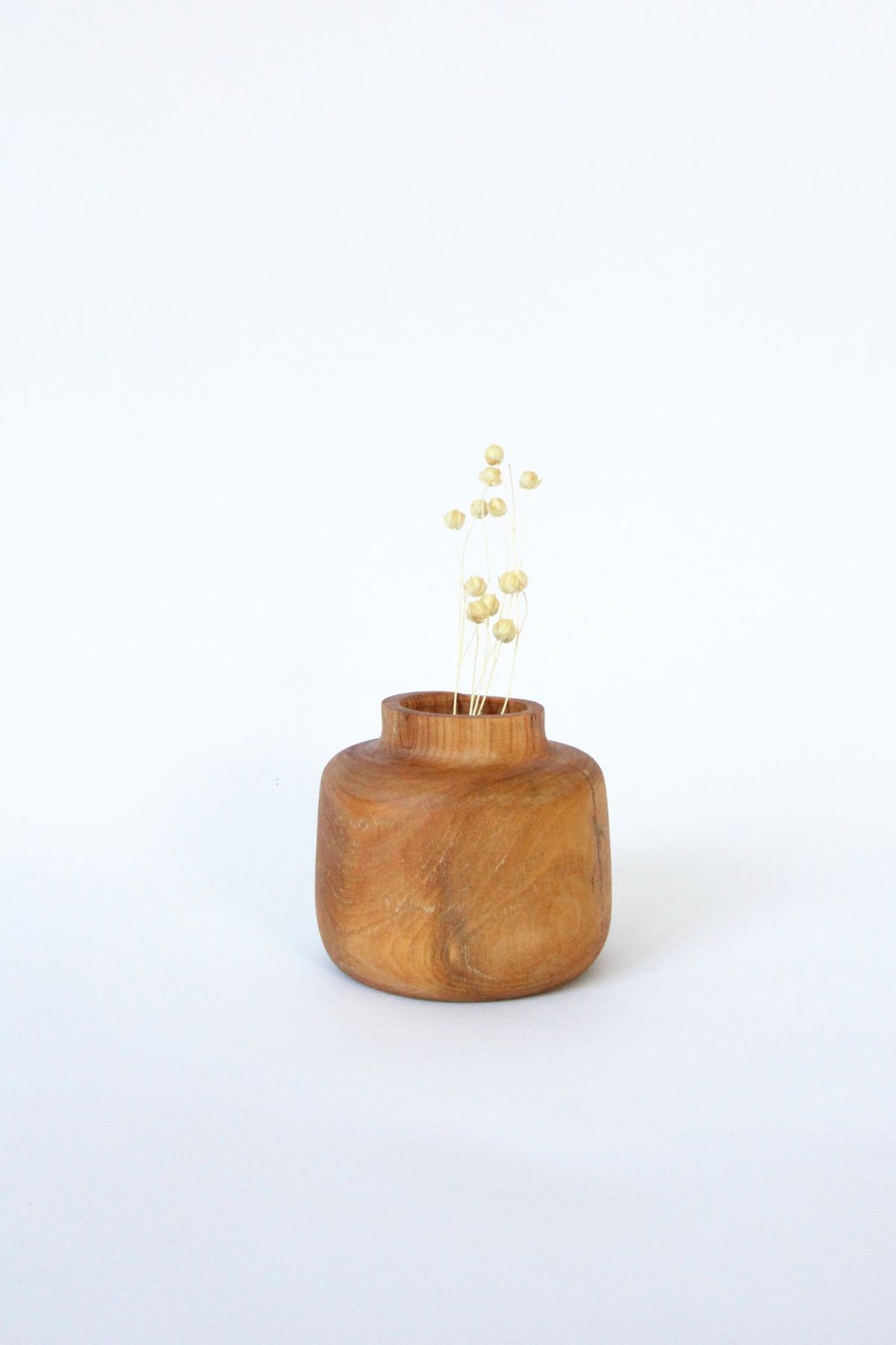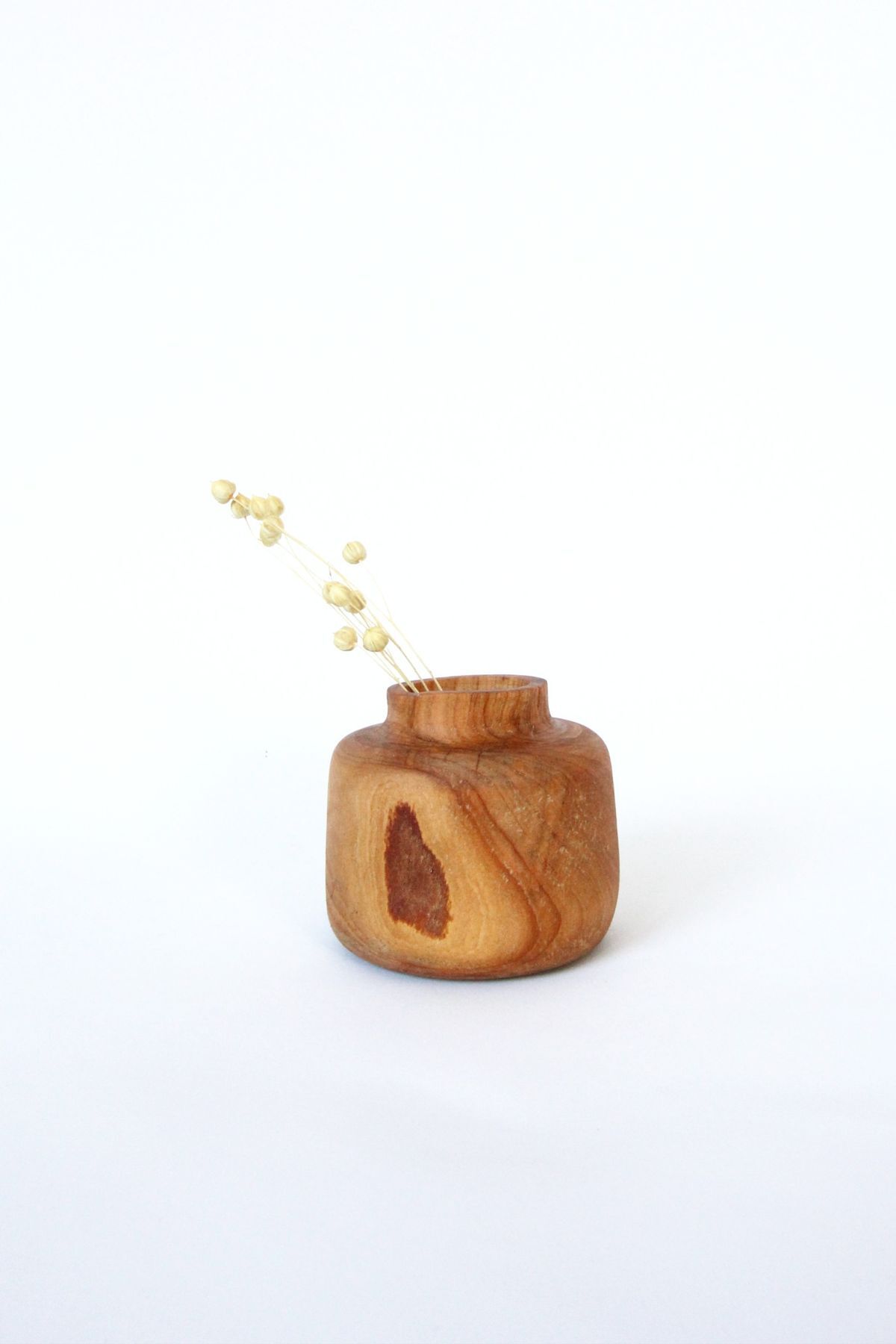 I put it on the lathe without much of a plan, more out of curiosity than intention. The wood resisted, cracked slightly, creaked. Yet with every turn it revealed something new: dense grain patterns, surprising shades, warmth hidden beneath the bark. Out of it came a small vase, one that fits in the hand yet catches the eye. Quiet, a little like a memory that suddenly returns without warning.